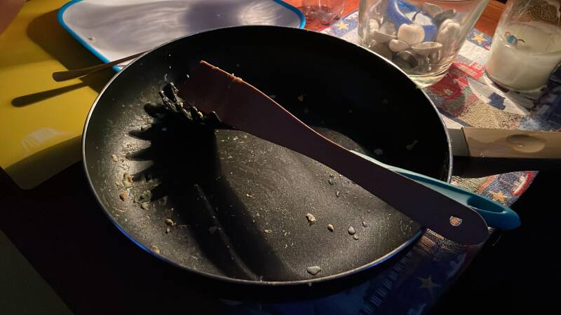 einmal Abendessen zubereiten, selbstverständlich ein Klassiker auf der Mögus, Spaghetti Alio Olio. Eingenommen wurde es im Wintergarten mit herrlicher Aussicht