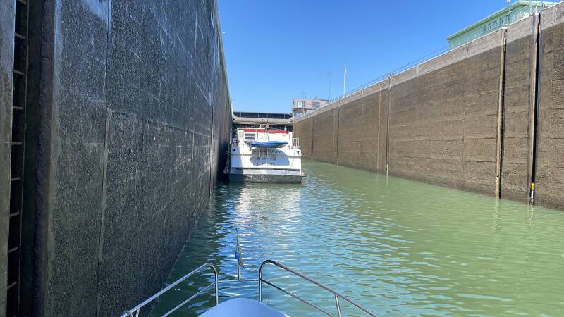 Unter Qualen des sich auf kalten Entzuges befindlichen Crewmitgliedes, werden die Schleusen Marckolsheim, Rhinau und Gerstheim abgeschleust. Geplant war ja bis zur Werft durch zufahren, hinsichtlich dem akuten Rauchwarenmangel, musste aber von diesem Vorhaben abgesehen werden. Somit entschied man sich, nach der Schleuse