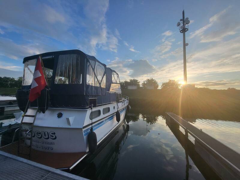 Nach dem Besuch der WAPO hatten wir nur noch ein sehr kurzes Stück ans Ziel, wo wir dann um den Mittag angekommen sind. Mögus gut bei der Auswasserungsstelle festgemacht, ein wenig klar Schiff gemacht und schon wurden wir auch durch die liebe Frau des Skippers zur Heimfahrt abgeholt. Mögus soll nun für diverse Refitarbeiten bis Mitte Juli auf der Werft bleiben. Tschüss Mögus, bis im Juli.
