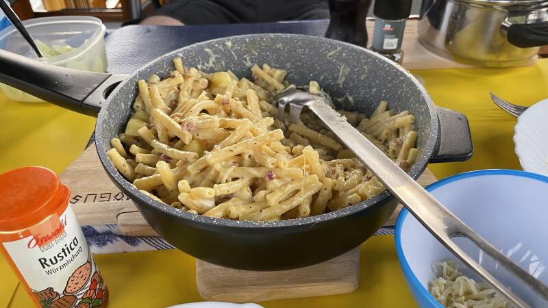 Die Zeit flog nur so vorüber und so meldete sich alsbald der Hunger. Auf dem Menue standen Aelplermagronen, gekocht vom männlichen Part unserer Gäste. Herrlich