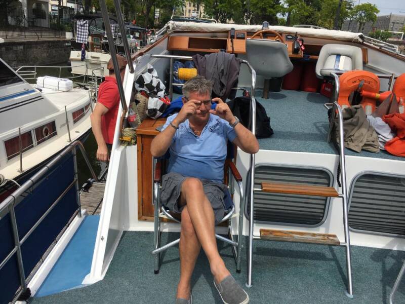 Nach zweieinhalb Meter Bergschleusung und einer kleinen Kohlenmonoxidvergiftung stehen wir kurz vor unserem Ziel. Leider scheint das auch auf den vor uns fahrenden “Stinker“ zuzutreffen, schnappt er sich doch den eigentlich für die Mögus reservierten Hafenplatz vor der Nase weg. Monsieur Capitain de la Port ist grosszügig und lässt uns die Wahl zwischen Krux und Kröte. Will heissen, wir können wählen zwischen Hafenmohle direkt an der Strasse oder eine schnuckelig kleinen Box mitten im Geschehen. Wir wählen die zweite Variante in welcher wir im zweiten Anlauf sicher festgemacht haben. Wie es sich in der christlichen Seefahrt geziemt wird erst einmal ein Anlegebier ausgeschenkt.