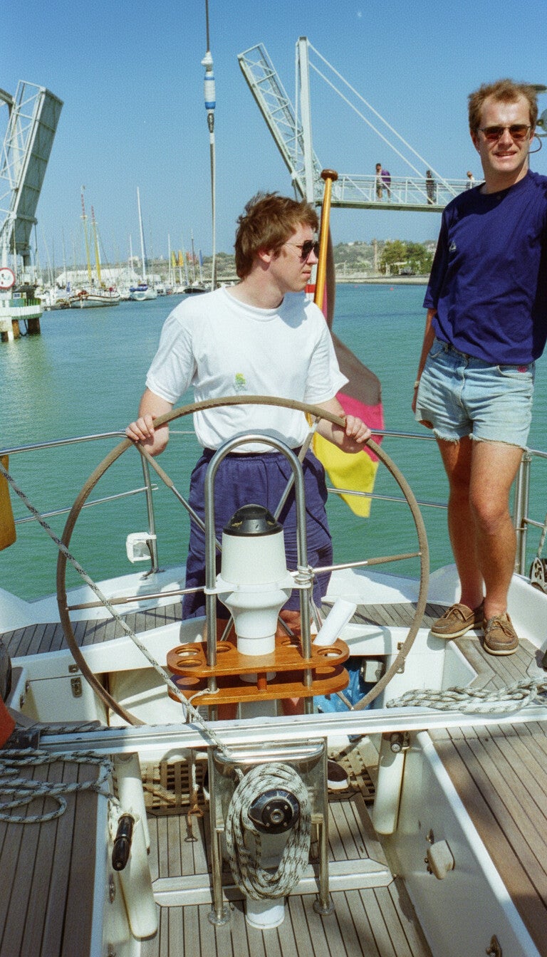 Nach einwöchigen Kurs mit anschliessender Prüfung durch den Cruising Club Schweiz, galt es erst einmal Meilen für den B-Schein zu sammeln. Durch die Zeitschrift Yacht wurden wir auf die Firma Sailaway Kiel-Holtenau, respektive deren Inhaber Constantin Claviez aufmerksam. Ein Glücksgriff wie sich herausstellen sollte. Kurzerhand hatten wir telefonisch (Internet war damals noch in den Kinderschuhen) einen Törn ab Lissabon in die Algarve, mit der SY Oline, eine Nautor's Swan um die 45 Fuss gebucht.